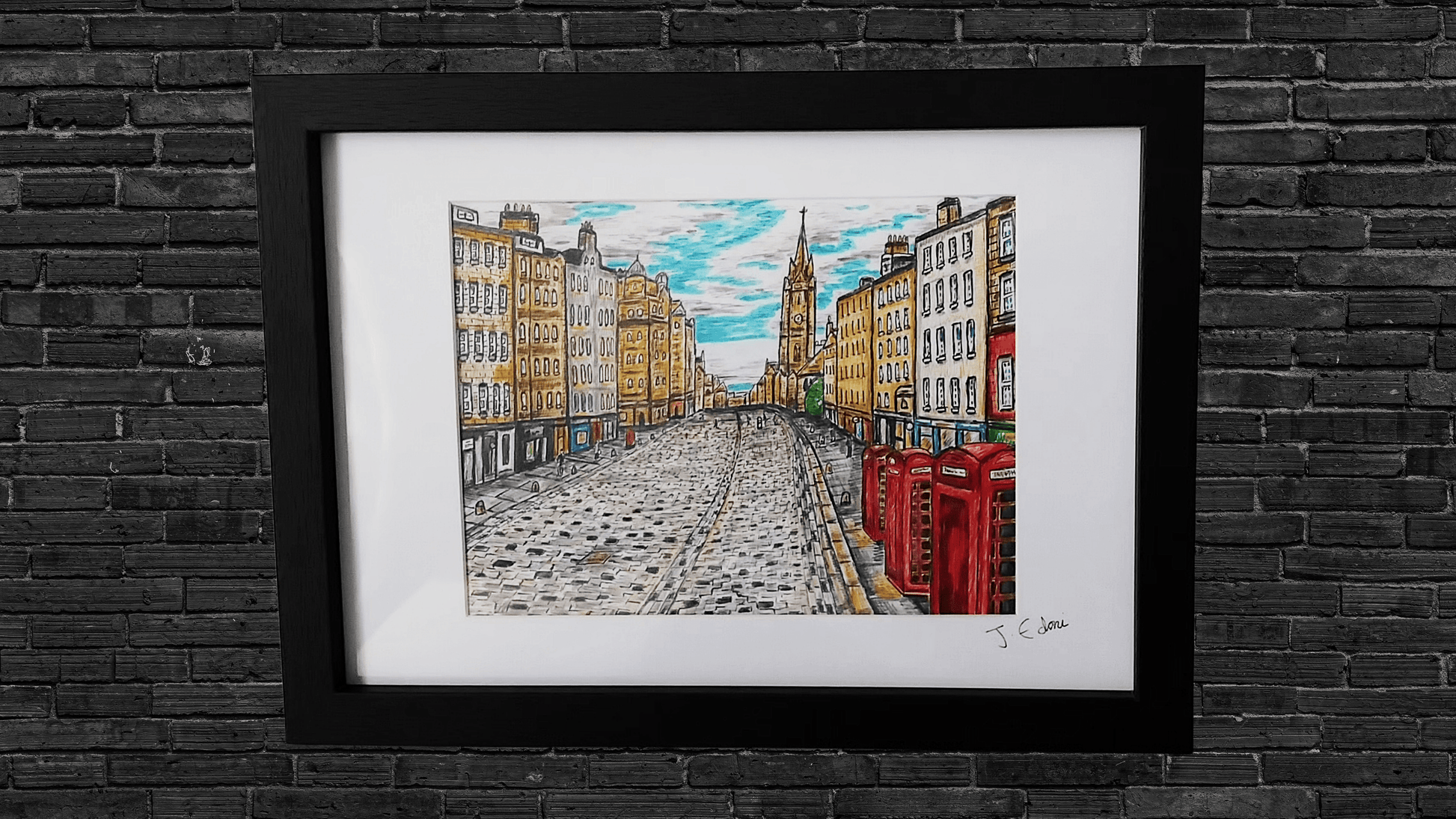 Bringing Edinburgh's most famous street to life with this charming Royal Mile artwork by Joe Edoni. Perfect for lovers of Scottish culture and historic destinations, a piece of Edinburgh décor for your home.